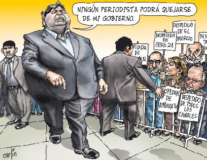 Alan García sigue frenético inaugurando obras inconclusas y buscando que su persecusión judicial a futuro sea trabada. Prsdte de la Corte Suprema de Justicia de la República Dr Cesar San Martin propone proyecto de ley que 'blinda' a Alan García ya que impide difusión de audios que lo comprometan en su vida privada y censura y amedrenta a periodistas que difundan dichos audios. Gana Perú contra-ataca denunciando al gobierno alanista de corrupción en contratación de empleados del sector público. 'Yo, Sí Opino' Mart 12/7/11